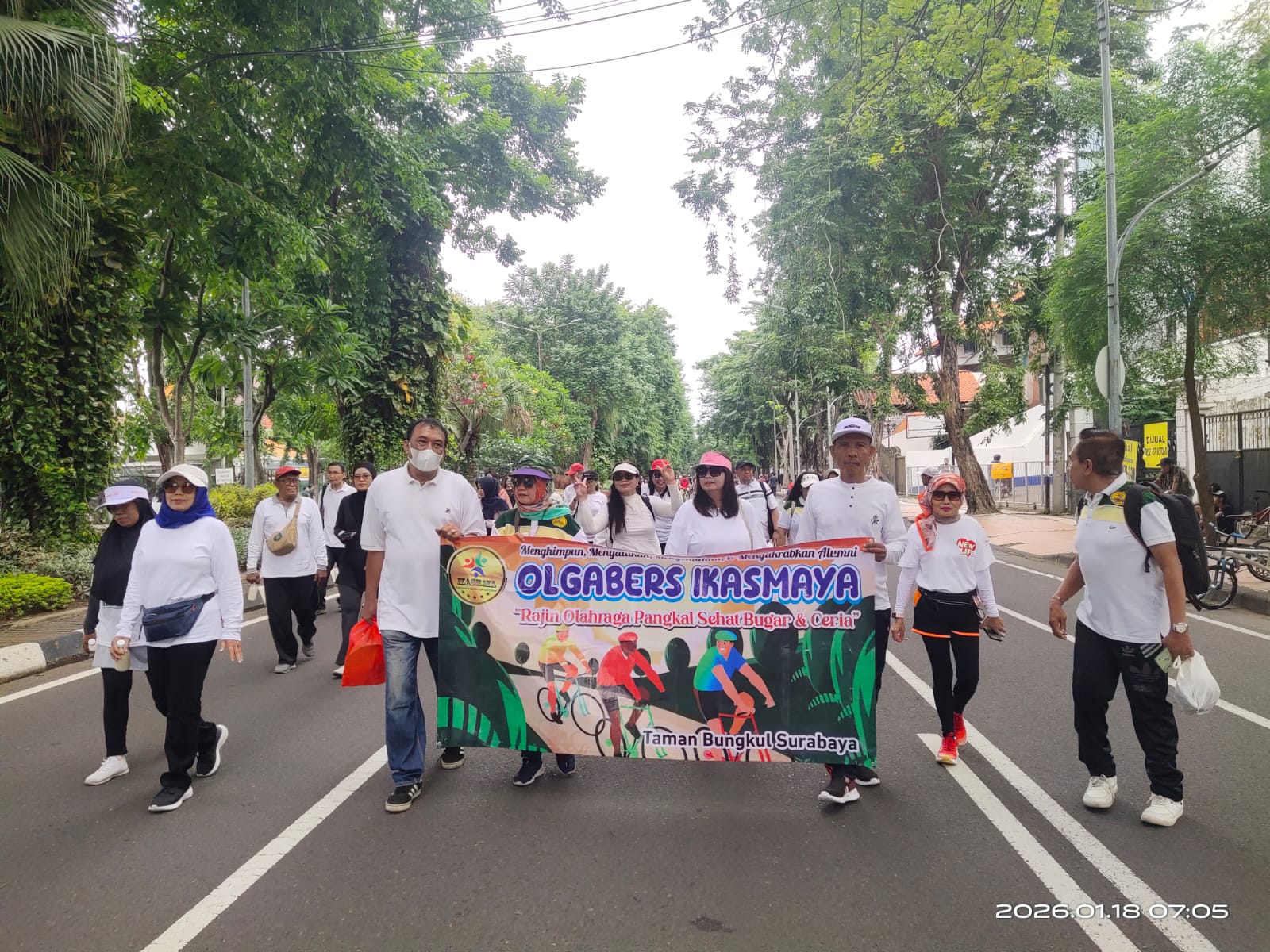 Surabaya, Jabar Banten – Ikatan Alumni Sekolah Menengah Atas Surabaya (IKASMAYA) adakan OLGABERS IKASMAYA (Olah Raga Bersama) IKASMAYA, kegiatan ini di isi dengan Senam dan Jalan Sehat bersama seluruh anggota di CFD (Car Free Day) Taman Bungkul Surabaya.