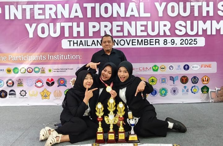 Bangkok, 8 November 2025 – Tiga mahasiswa Fakultas Kedokteran Universitas Hang Tuah (FK UHT) kembali menorehkan prestasi membanggakan di tingkat internasional. Tim yang terdiri atas Syahrilla Naswa Alamsyah Putri (20220410200), Luthfia Wahyu Ramadlani (20220410213) dan Azalia Shafaa Nareswari Irawan (20220410209) berhasil meraih sejumlah penghargaan pada ajang Youthpreneur Summit (YPS) 2025, yang berlangsung di Bangkok, Thailand, pada 8 November 2025.