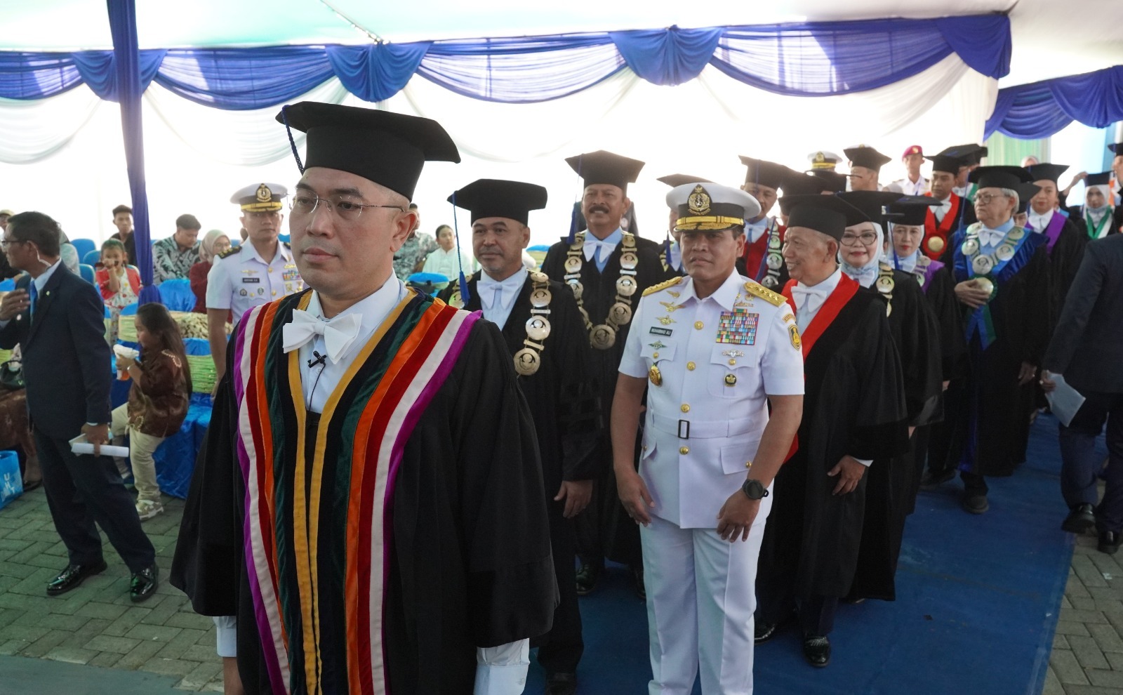 Kepala Staf Angkatan Laut (Kasal) Laksamana TNI Dr. Muhammad Ali, didampingi Panglima Komando Armada II Laksda TNI I G. P. Alit Jaya, S.H., M.Si., menyambut kepulangan Kapal Perang Republik Indonesia (KRI) Sultan Iskandar Muda-367 (KRI SIM-367) yang sandar di Dermaga Markas Komando Lintas Laut Militer (Mako Kolinlamil), Jakarta, Minggu (1/2). KRI SIM-367 merupakan unsur Satuan Kapal Eskorta (Satkor) Koarmada II yang tergabung dalam Satuan Tugas Maritime Task Force (Satgas MTF) TNI Konga XXVIII-P/UNIFIL.